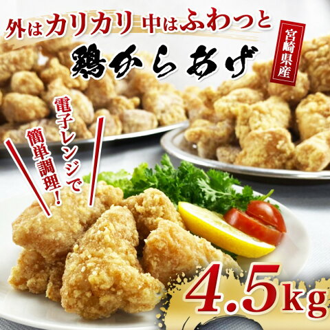 “食べる復興”にご協力ください! 商品詳細 名称【ふるさと納税】 宮崎県産鶏からあげ4.5Kg 内容量宮崎県産鶏 ・からあげ 300g×15パック 消費目処または賞味期限製造日より冷凍保存で365日 配送温度帯冷凍 保存方法冷凍 販売者ばあちゃん本舗株式会社 本製品には枠内を塗りつぶしたアレルギー物質が含まれています。