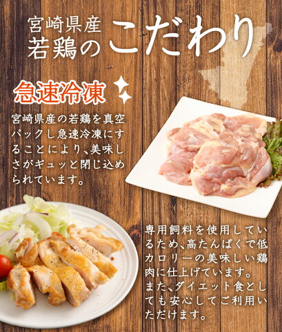 商品説明:宮崎県産の若鶏を真空パックし、急速冷凍して美味しさをギュッと閉じ込めました。