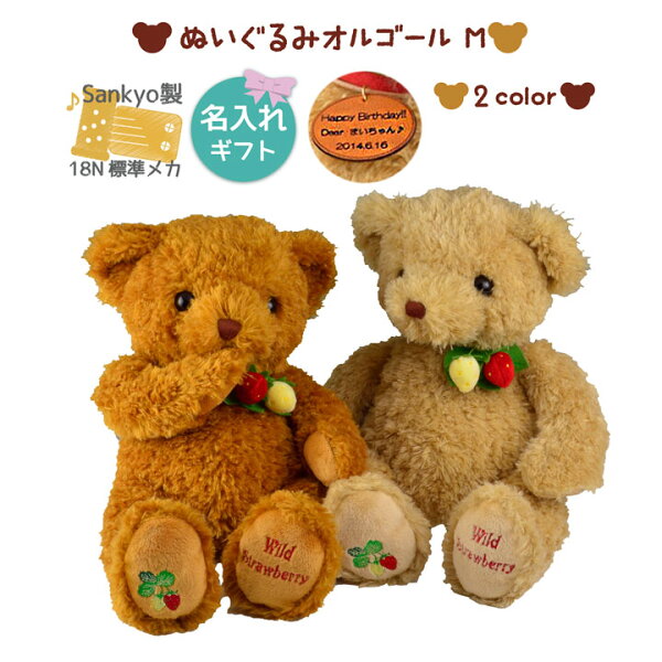ギフト対応 願い事が叶う!と話題になったワイルドストロベリー(野イチゴ)がポイントのクマのぬいぐるみオルゴールです。