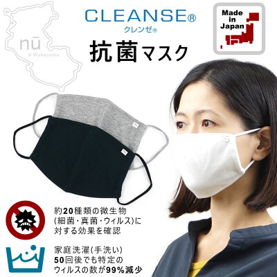 【2枚セット】nu 抗菌 抗ウイルス マスク クレンゼ CLEANSE 日本製 ますく 洗える 耳が痛くならない 静菌効果が凄い KURABO クラボウ 男性 女性 国産 国内製造 メール便 送料無料 贈り物 プレゼント ギフト