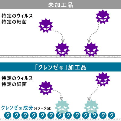 -優れた抗菌・抗ウイルス性- クレンゼ(R)の加工技術を施した繊維上に付いた特定のウイルスの数を減らし、 特定の細菌の増殖を抑えます。