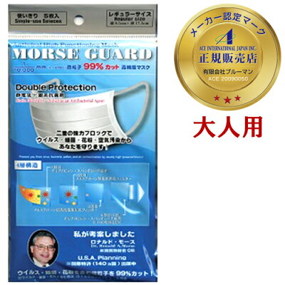 モースガード 5枚個包装 レギュラーサイズ 日本製 大人用 在庫あり 使い捨てマスク サージカルマスク 医療用マスク 国産 PM2.5対応マスク ウイルス 高機能マスク タバコ対策 花粉マスク PM2.5対策 花粉対策 mask 静菌効果が凄い