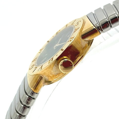 【商品情報】 【商品番号】S-210601-16 ブランドブルガリ タイプクオーツ バングルウォッチ モデルトゥボガス ラインブルガリブルガリ 形状レディース腕時計 型番BB192T 対象レディース 文字盤カラーブラック カラーシルバー×ゴールド 素材SS/18K サイズ ケース:19mm x 19mm バンド幅:13mmケース厚み:5mm表記サイズ:M 仕様 ムーブメント:クオーツディスプレイタイプ:アナログ表示 付属品なし 商品説明 ブルガリの特徴的な手首に絡みつく官能的なバングルデザインの「トゥボガス」。